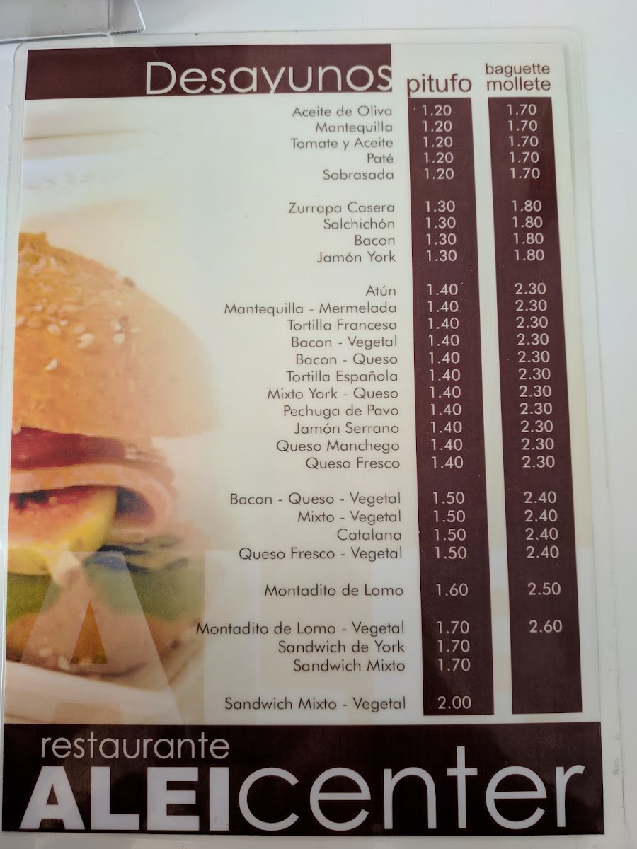 Cafeteria Alei Center Menu